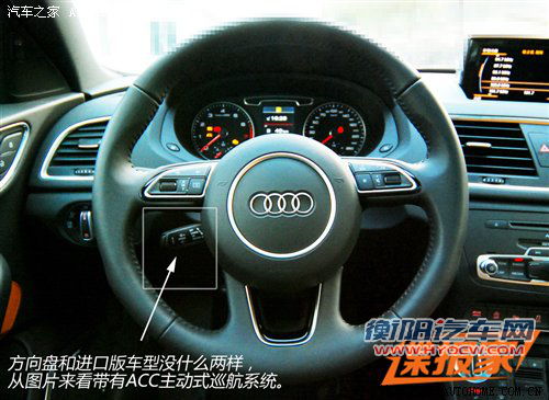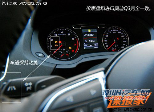 方向盘和仪表盘是此次重点被曝光的内容之一,从图片来看,国产后的奥迪Q3和进口车型没有任何差异,三辐方向盘带有换挡拨片。从方向盘左侧的拨杆来看,这台40TFSI还带有ACC主动巡航和车道保持功能,配置相当丰富。