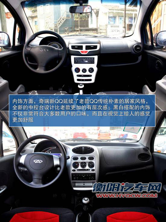 内饰:延续了老款QQ传统朴素的居家风格,更实用,实惠
