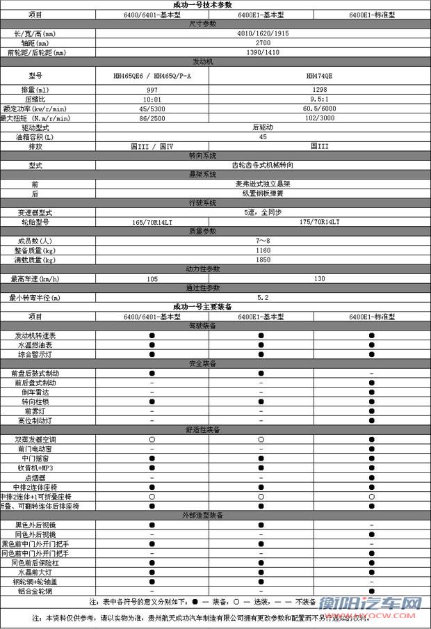成功一号是一款真正意义上的宽体大微客。 整车造型新颖、刚劲有力;线条流畅、轮廓分明; 轿车化轮眉设计、阳刚、饱满,大气而时尚,给人一种稳重、扎实感。 超长的车身和超长的轴距带来了可靠驾乘舒适性和稳定性。同时还配装成功HH474QE发动机,动力强劲且省油,符合小排量、大功率、节能环保要求。成功一号秉承军工企业优良传统、以稳定的品质赢得用户,实现“3年6万公里保修”的服务承诺,为客户提供更优质的产品和人性化的亲情服务,不断提升客户的满意度和忠诚度。