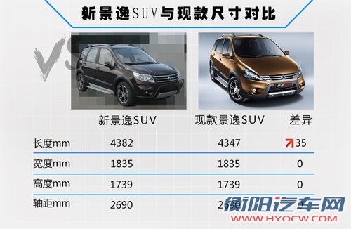新款景逸SUV的推出,新车的车身尺寸也有所改变,相比现款车型而言,该车在长度上增加了35mm,宽的高度则保持不变,轴距与现款车同为2690mm。