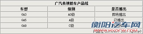 在本届上海车展期间,广汽传祺发布了旗下首款A0级轿车GA3,新车的推出使传祺轿车产品线布 局进一步得到完善。此外对于新车所搭载的发动机,广汽乘用车总经理吴松先生在接受媒体采 访时介绍到:GA3先期将推出1.6L车型,随后还将推出1.3T车型。 与此同时,网通社还从广汽传祺官方处获悉:GA3将于7月25日正式下线。网通社编辑在走访多家广汽传祺4S店后了解到:GA3将于本月正式上市,广汽传祺新车将首先推出1.6L版本,预售价格在8万元左右,而后期还将有搭载1.3T发动机车型推出。 广汽传祺将推A0级车GA3 丰富轿车产品线 广汽传祺轿车产品线中,目前仅拥有一款A级车型GA5,单一的产品导致广汽传祺在自主轿车市场中的竞争力明显不足,为了弥补产品线上存在的劣势,广汽传祺将补充一款A0级新车GA3。GA3推出后不仅使传祺品牌轿车产品序列进一步完善,还有望在细分市场竞争中凭借技术优势增加品牌影响力。 新车本月上市 首推1.6L车型 目前广汽传祺在研发新车型的同时,还进行着多种排量发动机的生产研发,GA5、GS5车型已搭载了广汽传祺自主研发的1.8L、1.8T以及2.0L多款引擎,而最新研发的1.6L发动机则有望率先搭载到GA3车型上。 新车还将搭载自主1.3T引擎 新车的推出虽然丰富了传祺轿车产品序列,但单一的动力并不能满足消费者更多的购车需求,此前广汽乘用车总经理吴松先生在接受媒体采访时表示:“传祺GA3还具备多样化的动力总成,除了推出1.6L之外,还要推出1.3T车型。”广汽传祺凭借丰富的技术储备,开始研发制造1.0T、1.3T等小排量增压引擎,并在未来搭载到包括GA3在内的多款新车。 GA3作为广汽传祺精心打造的全新车型,将采用四轮独立悬挂系统,这种配置在同级车型中十分少见,另外车身配置上GA3还将全系标配ESP车身电子稳定系统,有望使新车在行驶安全性和稳定性上高于同级车型,竞争力更明显。