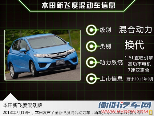 在2013年7月19日,本田发布了全新飞度混合动力车,新车预计会在2013年9月份上市销售。与现款飞度混动版(CVT)不同的是,新飞度混动版在传动系统上采用了7速双离合变速器。“我们也曾经讨论过新一代混合动力系统到底是采用CVT还是DCT?最终选择了驾驶乐趣更好的DCT。”本田技术研究所常务董事三部敏宏曾表示。