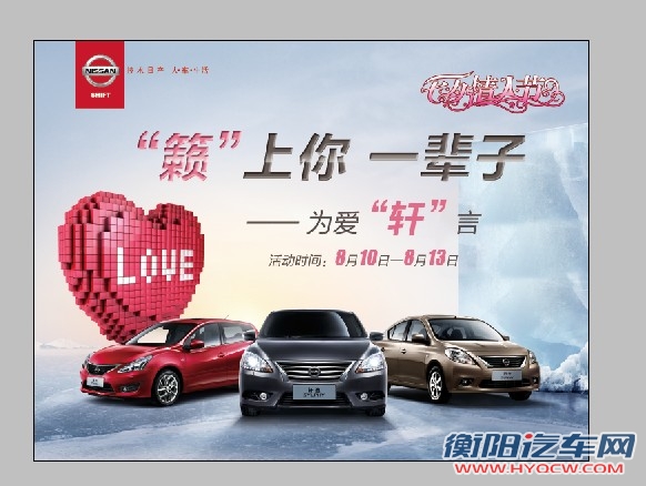 衡阳汽车网讯:浪漫七夕,温情雁城,衡阳高卫在8月10日-13日举办《“籁”上你,一辈子——为爱“轩”言》主题活动,六大豪礼狂送、真情溢满七夕。到店就有惊喜,豪礼尽情送:真爱誓言礼、零距离魅惑礼、私定终生礼、心心相印礼、情意久久礼,礼礼相送,情浓不断,让你这个夏天豪礼尽享,爱情长长。