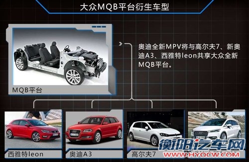 大众最新MQB平台是一款发动机撗置平台,其生产范围涵盖了大众A0级至B级车型。现已在现款奥迪A3、西雅特Leon、高尔夫7等热销车型中被广泛应用。据网通社了解,此款奥迪全新MPV也将出自这一模块化平台。