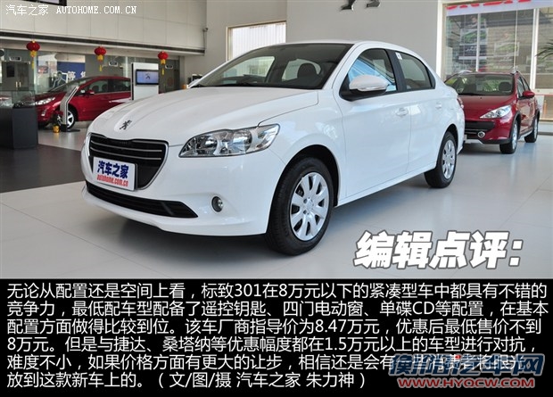 标致301 1.6L手动舒适版的厂商指导价为8.47万元,而根据汽车之家降价排行榜的统计,这款车的最高市场优惠幅度约在6000元左右,也就是说最低售价其实还不到8万元。但是在和竞争对手捷达、桑塔纳等车型的对抗中,后者的市场优惠幅度相当大,均达到1.5万元左右,而标致301由于刚上市不久,凭借目前的优惠幅度要在市场中分得一杯羹,难度并不小,若能够随着时间的推移,在价格方面有更大的让步,相信凭借更好的基础配置,还是会有一些消费者将眼光放到这款新车上的。(文/图/摄 朱力神)