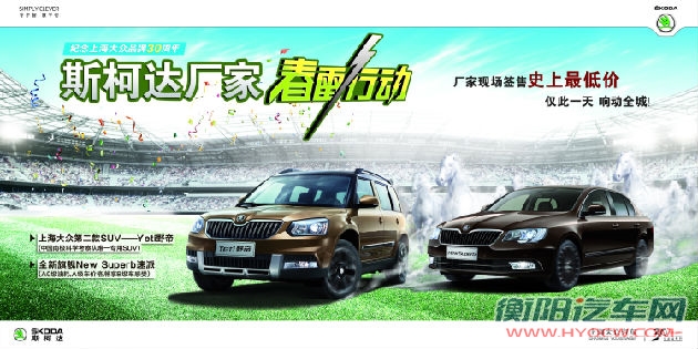 衡阳汽车网讯:3月16日下午14:00-17:0,斯柯达厂家春雷行动全省同步进行,厂家现场签售历史最低价,仅此一天。厂家放价才是真实惠,现接受报名!