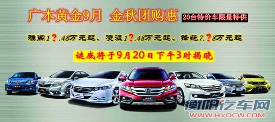 庞大和信广本“黄金9月金秋团购惠”多重关怀,届时让您感受到有如九月暖秋般的舒适与惬意,我们恭迎您的莅临!咨询热线:0734-8589000。